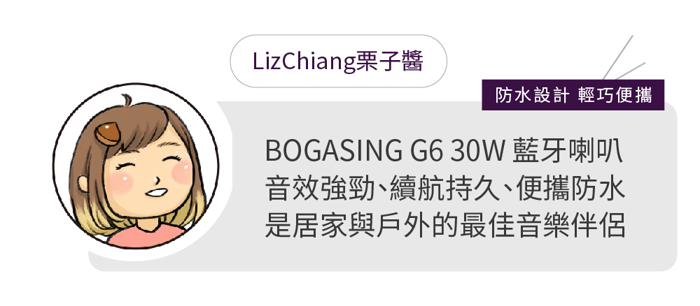 雖然外形小巧,但 G6 能提供 30W 的震撼聲效。澎湃低音、細膩音質以及充沛的音量,足以填滿整個房間,讓您徹底沉浸在音樂的世界中。
